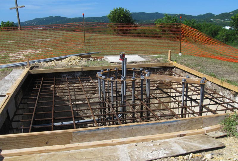 Construction continues. The cage and massive bolts are in place (pictured). The concrete should be poured by this Sunday.