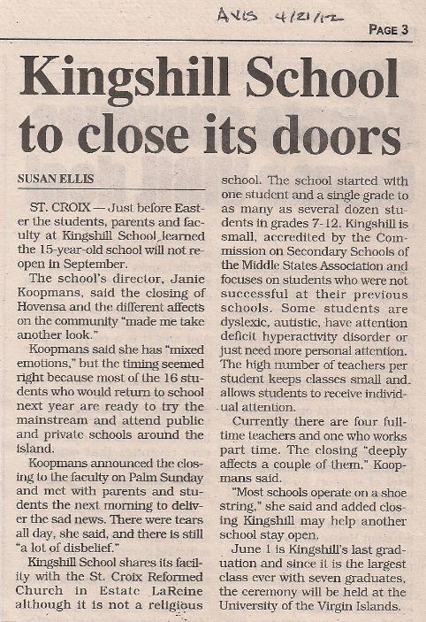 Kingshill School is closing its doors this Spring after graduation.
