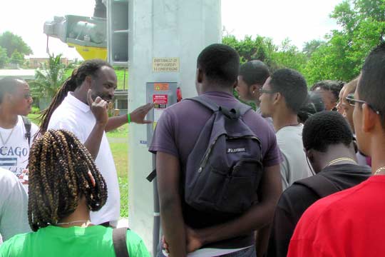 Students from the St Croix Math and Environmental Science Academy visited our church last week to learn about Wind energy and turbine technology. Led by Carl Joseph from the VI Energy Office (pictured below), the students learned the science of how turbines capture and convert wind to electrical energy to power the St Croix grid.